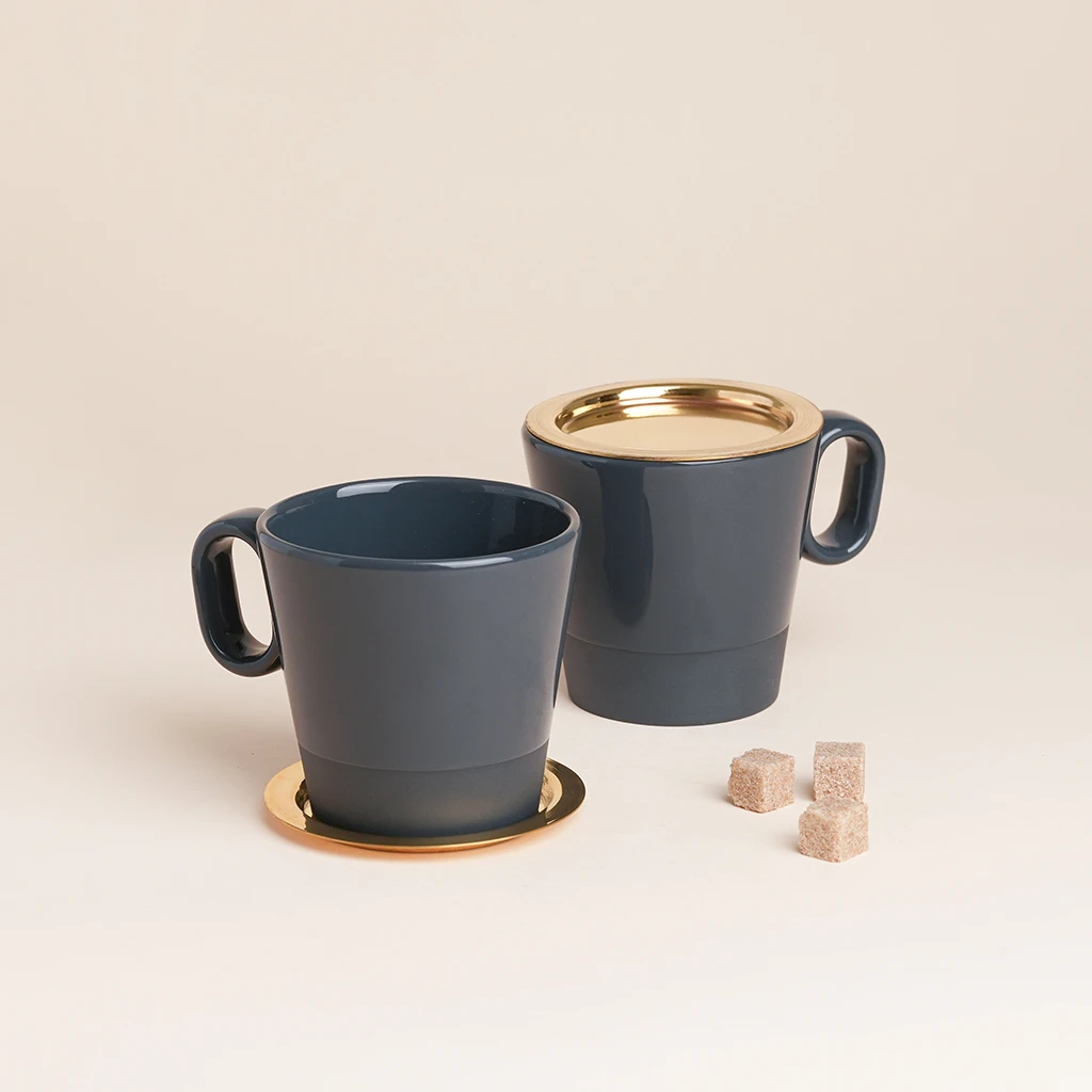 Coffee mug in glazed stoneware with Brass Lid