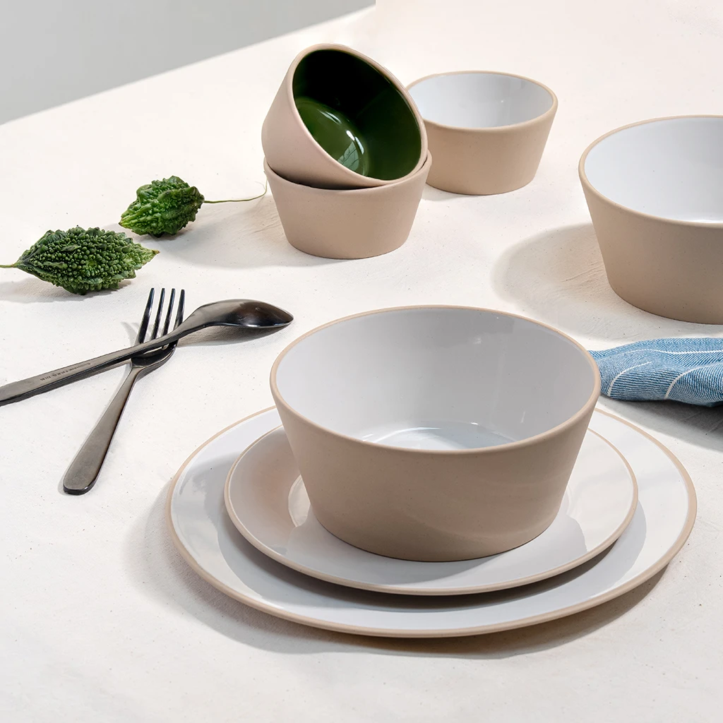 Designed in balanced geometry and crafted in stoneware, the set of full plates is a staple for a well-laid table. Experience fine dine at home with this selection of tableware!