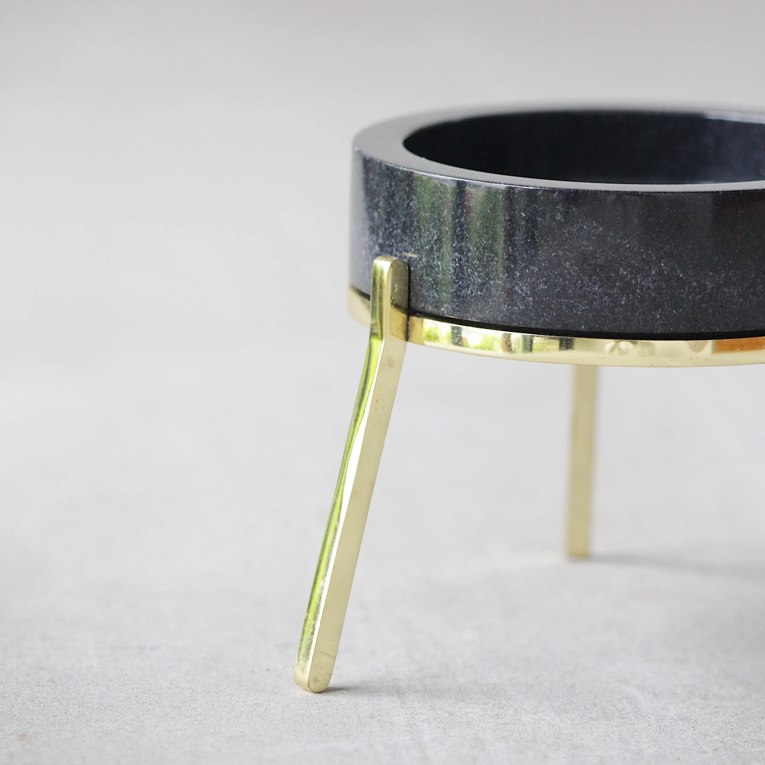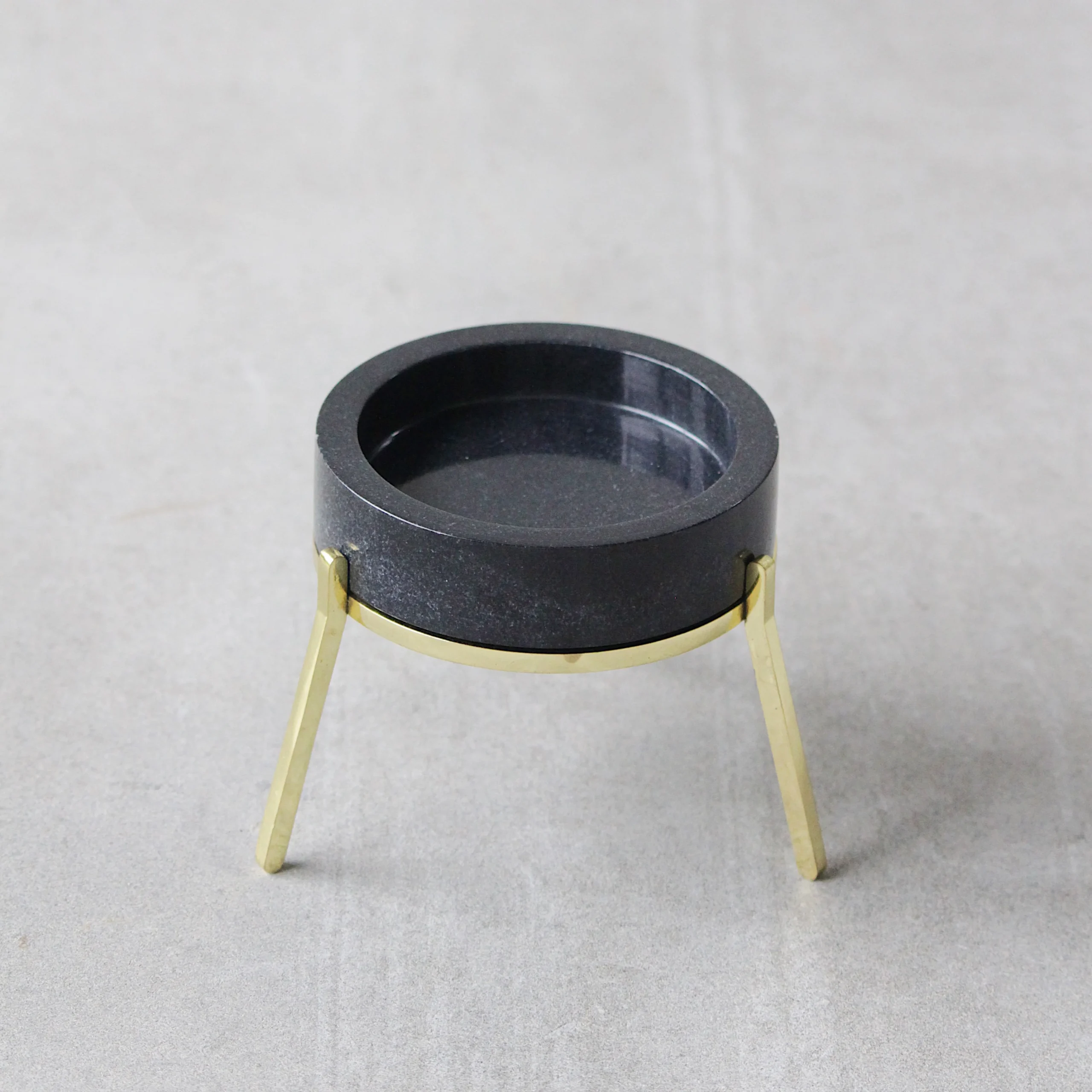Handcrafted candle holder featuring a black marble base and brass stand. Designed to hold wide pillar candles, this piece adds a touch of elegance and warmth to any setting.