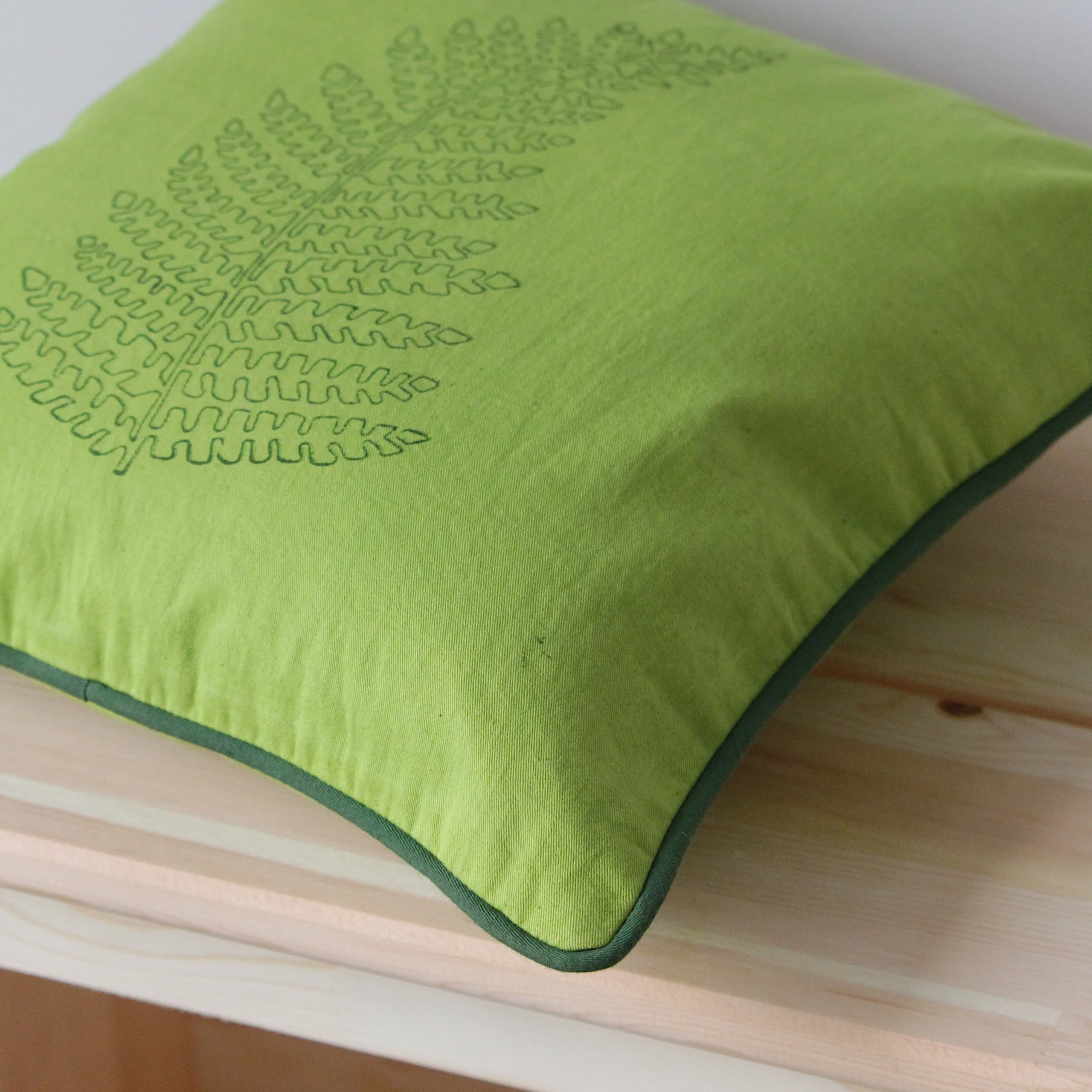 Set of two 300 x 300 mm cushion covers featuring a forest foliage design, hand screen-printed on 100% cotton fabric. Adds a touch of natural elegance to your living space.