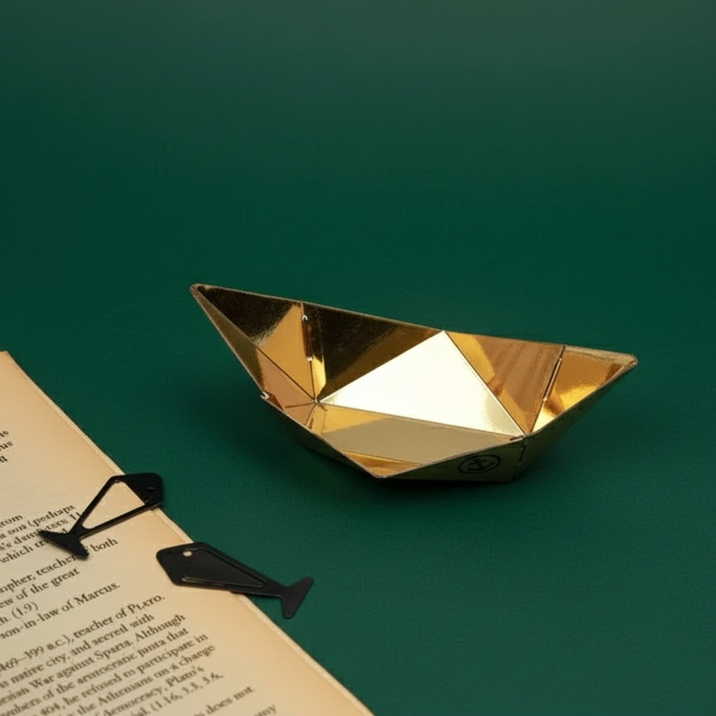 A gift set of desk objects, playPLANE – a memo holder, playHOUSE – a paper weight and playBOAT – a paperclip container with 10 fish shaped clips, designed to add a touch of nostalgia and functionality to your workspace.