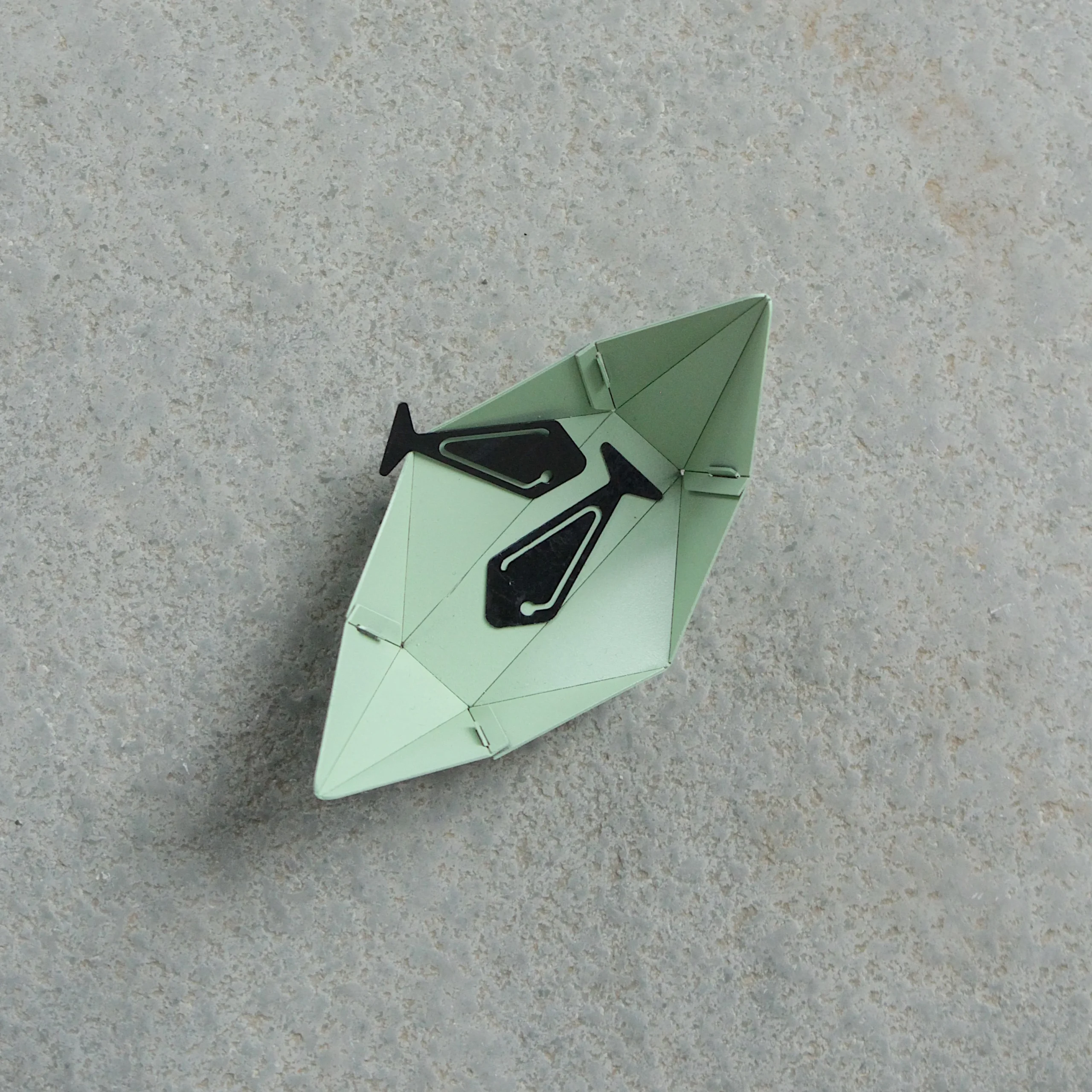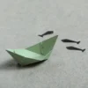 Rayden playBOAT [Green] – Brass Paper Boat with Black Fish-Shaped Paper Clips