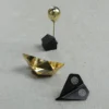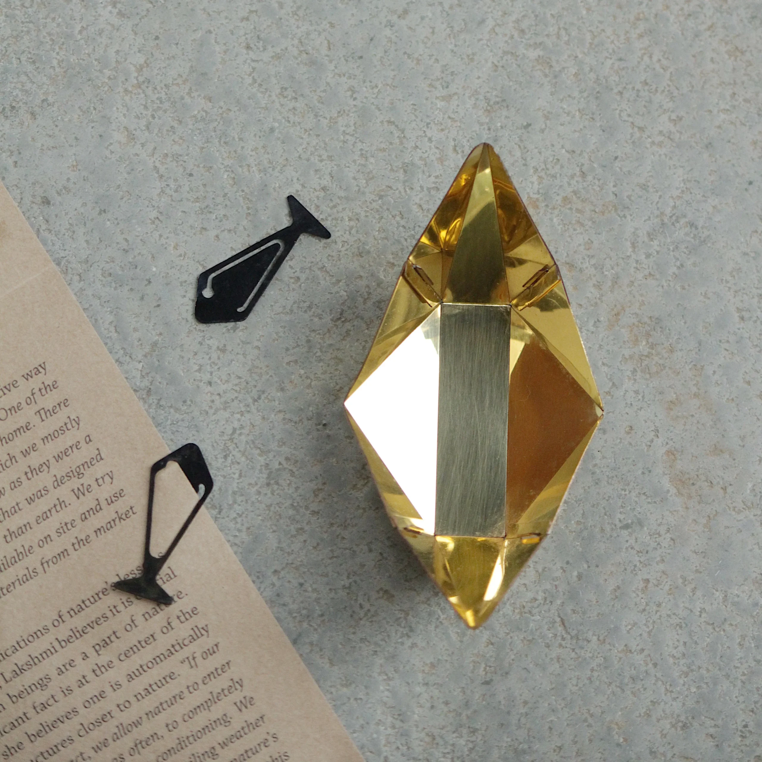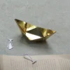 The playBOAT is a whimsical desk accessory crafted from matte brass, measuring 100 x 55 x 32 mm. It includes 10 black fish-shaped paper clips, adding a playful touch to your workspace.