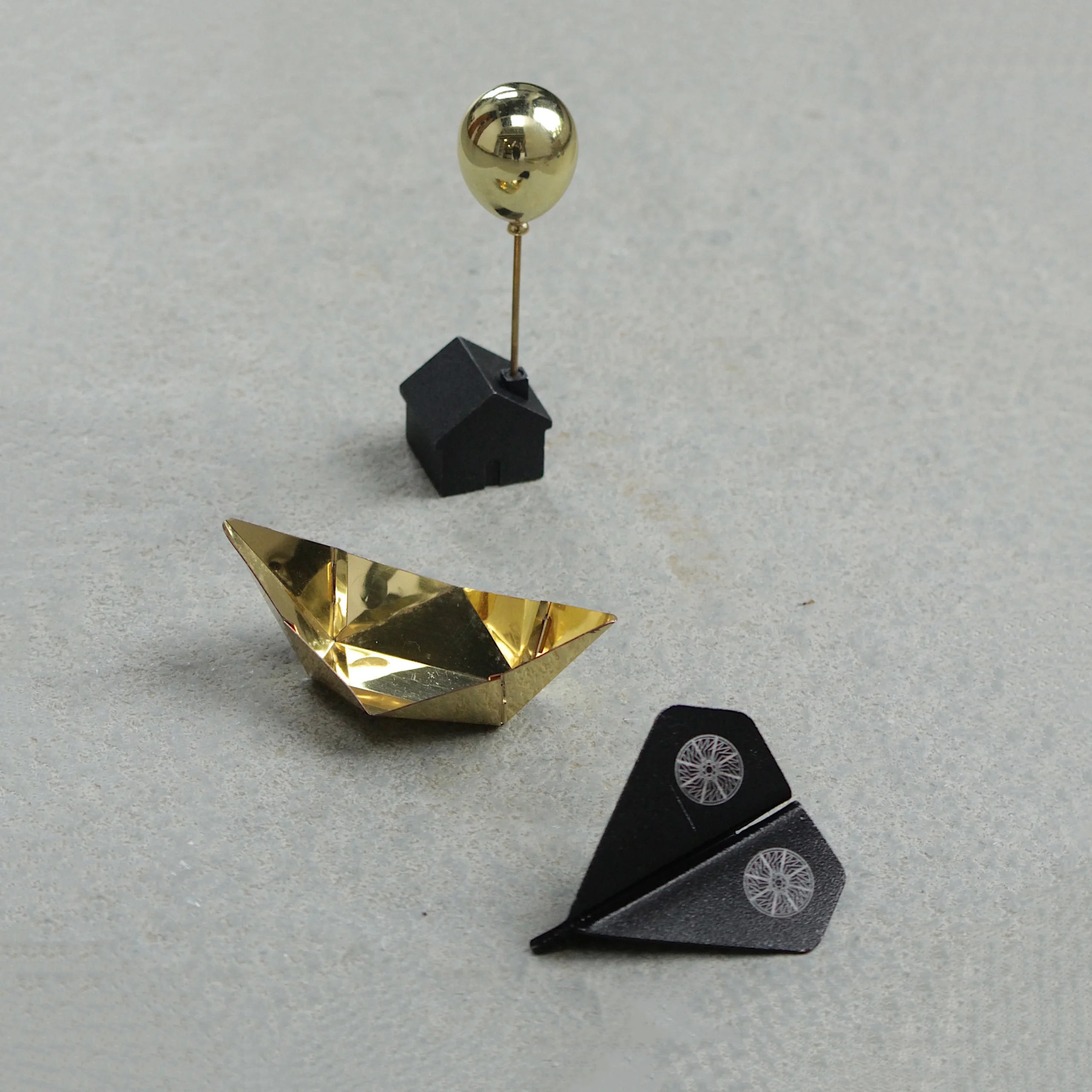 PlayHOUSE in matte black & brass, perfect for desks, offices, or gifting. Crafted from mild steel and aluminum, it measures 40 x 40 x 110 mm and serves as a functional paperweight, adding a touch of nostalgia and charm to your workspace.