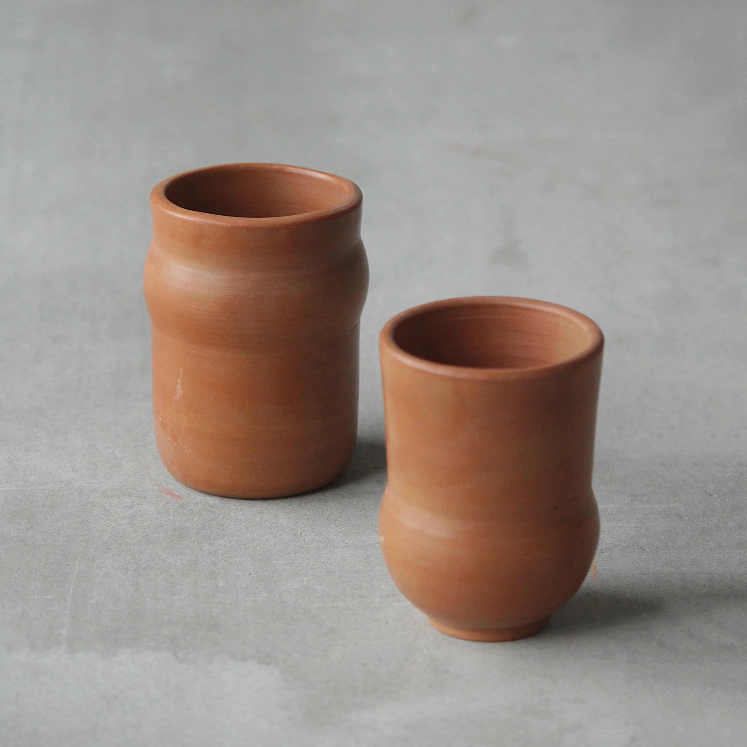 Drinware set of 2 tumblers and carafe, Qnch, handcrafted in terracotta for its naturally cooling properties | Modern use, traditional craftsmanship