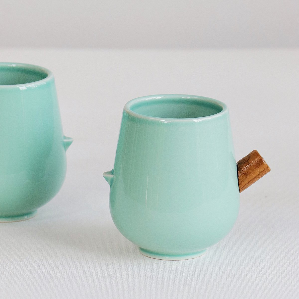 Rayden Urban Tweeter Glasses – Turquoise x 2 – Handcrafted Ceramic Drinkware with Wooden Accents
