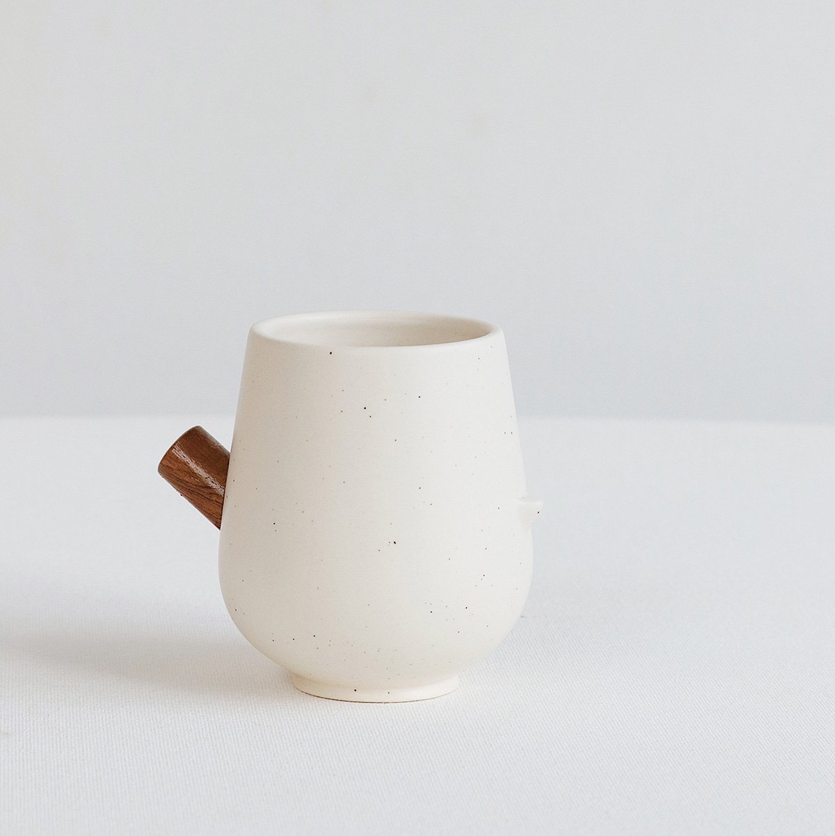 Rayden Urban Tweeter Glasses – White x 2 – Handcrafted Ceramic Drinkware with Wooden Accents