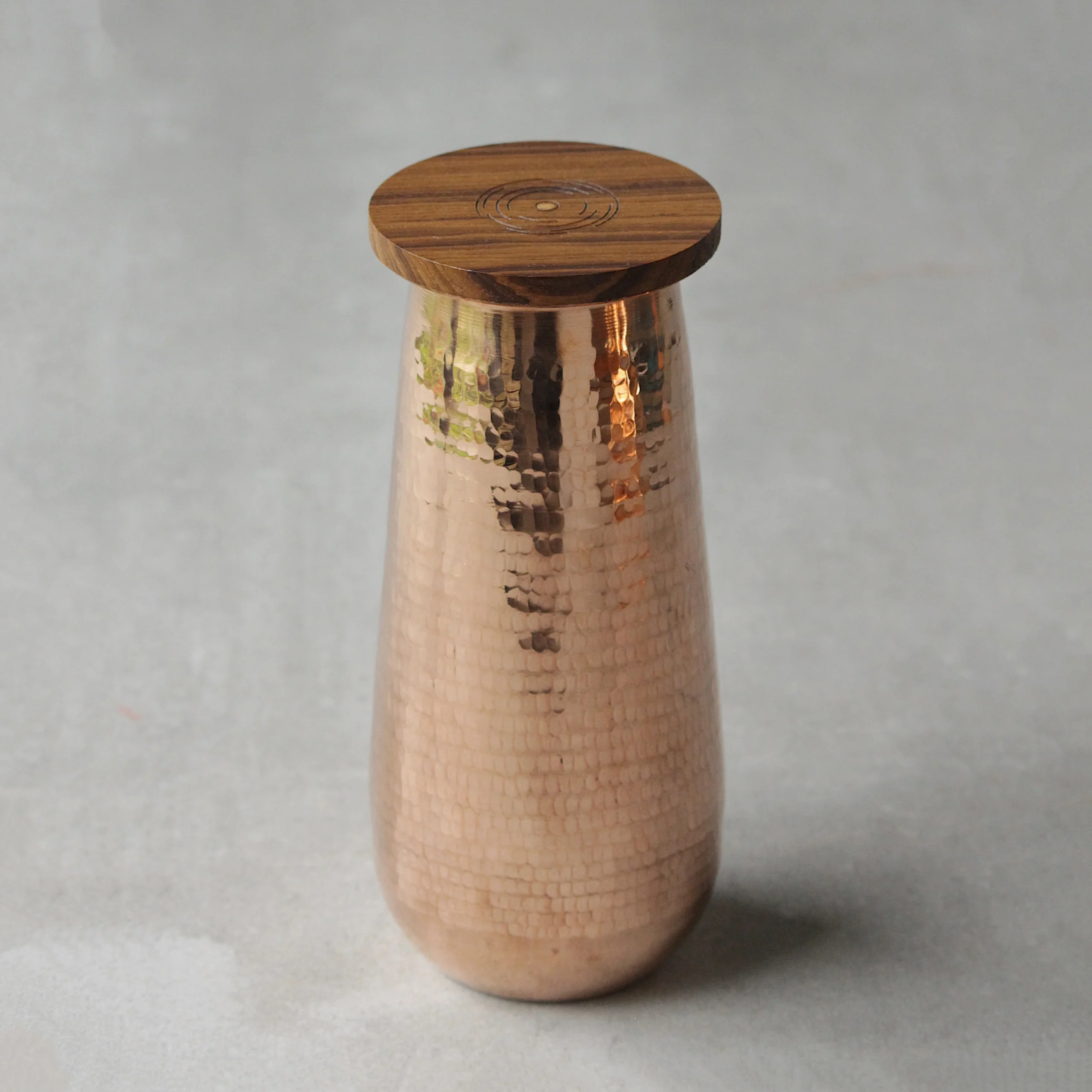 Watr Carafe with a Teak wood lid, Drinkware handcrafted in 99% Copper for its purifying properties | Modern use, traditional craftsmanship